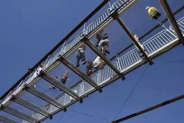 张家界的玻璃天桥 重庆的第一天空悬廊 …… 这些不久前大火的刺激项目 你都体验过了吗? 据说,去过的人都是跪着回来的 前面这些你还没体验 新的作死花样又来了! 前不久,又有一座玻璃桥亮相 这座桥不跨山,不悬空 而是横跨大河 而这条河也不是别人 正是我们的母亲河——黄河 更重要的是 这还是我国首座3D玻璃桥! 一座桥 却有两种感受 不仅有透明玻璃桥的刺激 还有3D体验的惊险之感 就问你惊不惊喜 这座桥就在宁夏中卫沙坡头景区内 今年一经亮相 可以说再次刷爆了朋友圈 先看几张图随意感受下 玻璃桥全长210米,宽度2.6米 桥面距离河面的垂直高度为10米 每块玻璃的承重为3吨 只要胆够大 任你在玻璃桥上折腾 原本 沙坡头这座3D玻璃桥是悬索桥 刚建成时也全由木板铺设而成 如今,则全换成了钢化玻璃 走在透明玻璃桥上 脚下就是波涛汹涌的黄河水 恍如就走在这河水之上 脚下不觉有点发软 距离河面10米的高度 想想10米跳台的恐怖 这不算是个小数字了 加上透明感 难免让人心生恐惧 而宽宽的桥面 可以让人平躺下来 不往下看仿佛就没那么可怕 就静静听着 “风在吼,马在叫,黄河在咆哮” 也是一种享受啊 这座桥的特别之处还在于 不仅有让人发抖的透明玻璃 还有如临其境的3D画面玻璃 这下 桥已经不存在了 走在上面 就好像走在河里一样 让人不敢迈下脚步 好像一不小心就会坠入河里了 “来来,靠边走 踩着石头,别掉河里” 你们这么认真走 看来真的很逼真 飞流直下三千尺 疑是银河落九天 这万里瀑布 还是踩着石头走比较安心 所以如果真的害怕 完全可以当做一场冒险 踩着石头走到安全区域 顺利到达 也还有完成挑战的成就感 当然 也有不害怕的主 脚下生风大摇大摆走过 还能一边看看黄河的风景 敬你是条汉子 还有姑娘们 直接在桥上做起了瑜伽 耳边是呼啸的黄河 心里却异常宁静 走过了急流般的黄河瀑布阶段 就是一片开阔的蓝天白云 站在桥上欣赏黄河景色 也是十分惬意了 当然,到了沙坡头 还有许多其他刺激体验 完全足够玩到嗨
